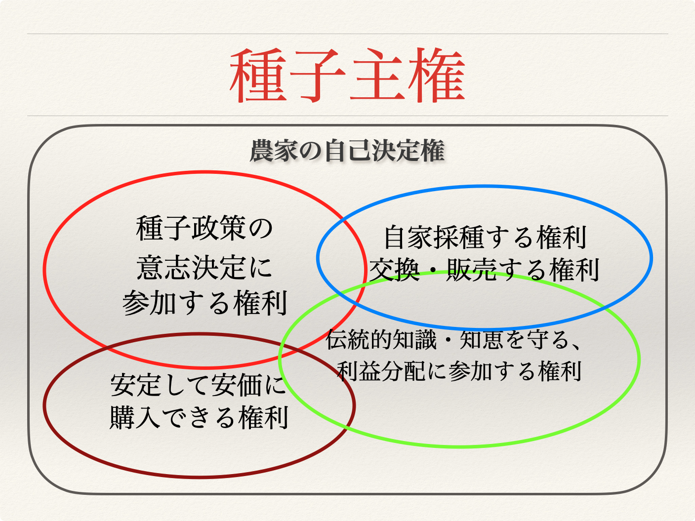 日本でも本当の意味で種子主権を取り戻すためには何が必要なのか、今一度、根本に戻って考えることが不可欠だ²。種子主権なしに食料主権はありえず、食料主権なしには民主的な社会はありえない。その種子主権が今の日本はとても危ういのだ。